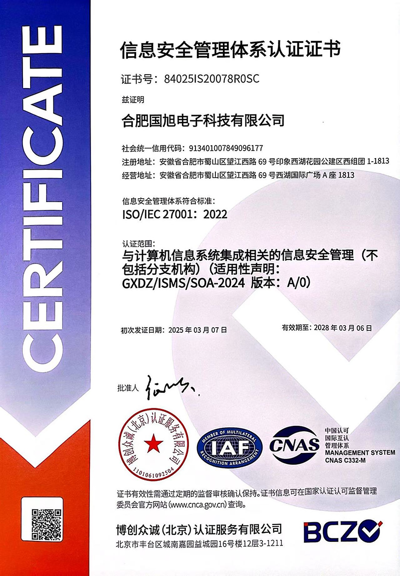 合肥國旭電子科技有限公司創(chuàng)立于2006年,總注冊資本2008萬。公司總部地址位于安徽IT主流商圈核心,合肥市蜀山區(qū)望江西路與肥西路交口西湖國際廣場。 公司是專業(yè)從事智能防雷檢測系統(tǒng)、智能化工程設(shè)計(jì)與施工工程、防雷設(shè)計(jì)施工工程、數(shù)據(jù)中心機(jī)房、消防工程、網(wǎng)絡(luò)監(jiān)控安全技術(shù)防范工程、及智能變電站安全預(yù)警系統(tǒng)。